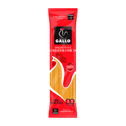- 公鸡西班牙原装进口直条形意大利面3#500g袋装方便速食面
